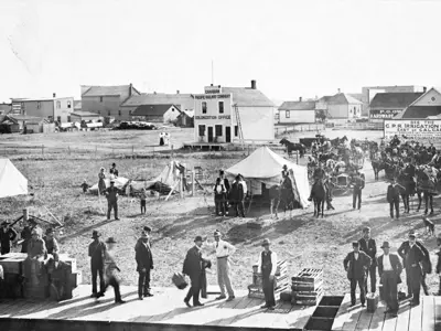 By 1886 the intensive advertising campaign, launched by the Federal Government with the CPR to bring settlers west, was beginning to work. The Town was booming with lots being opened for sale in 1905 and by 1906 the CPR began selling land at $12 to $15 per acre, with irrigable land at $18 to $25 per acre.