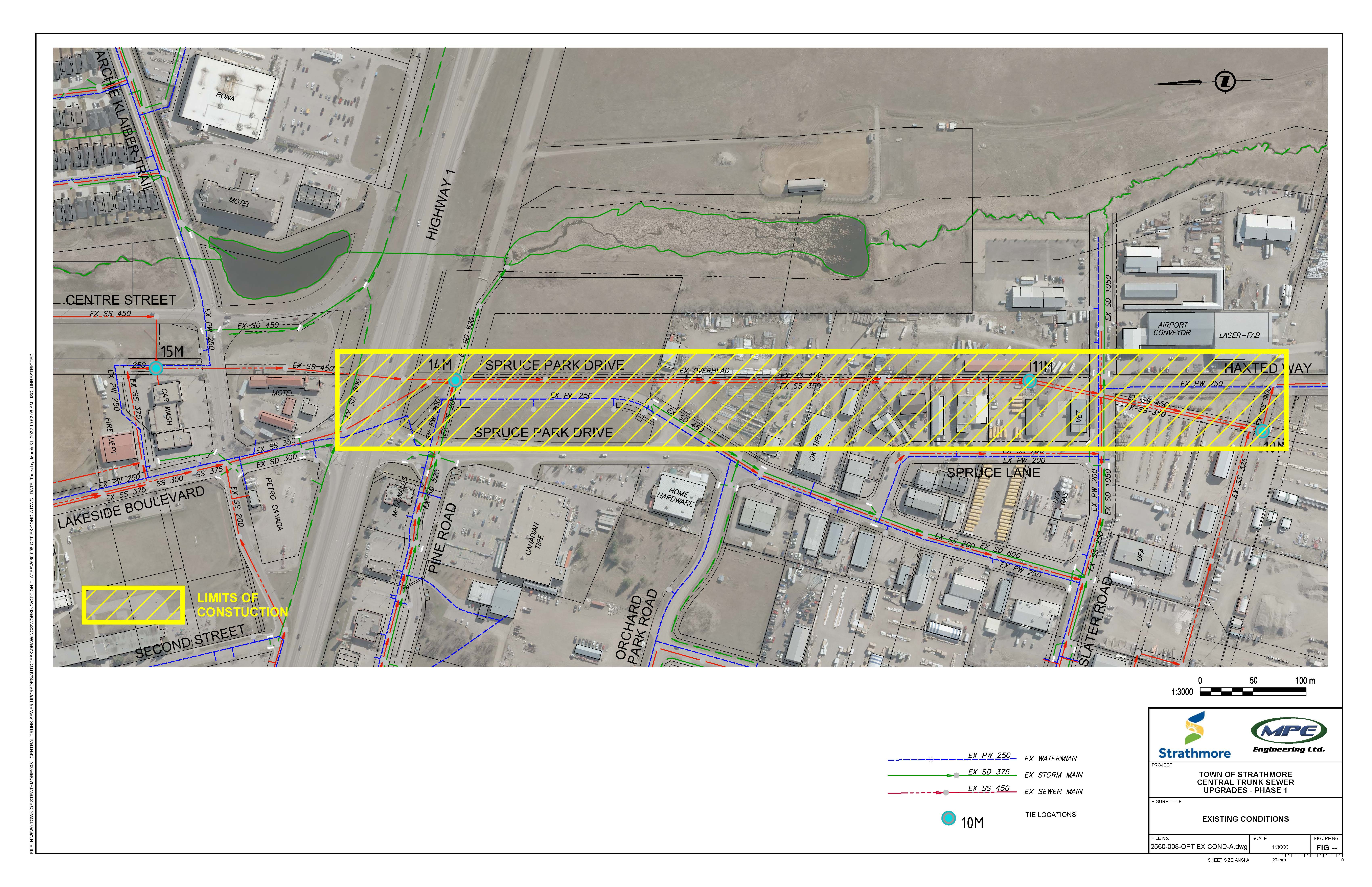2026, installation of the new upgraded sewer main will be constructed across Highway #1 at Strathpoint and will run south through the commercial/industrial sites to just south of the UFA.