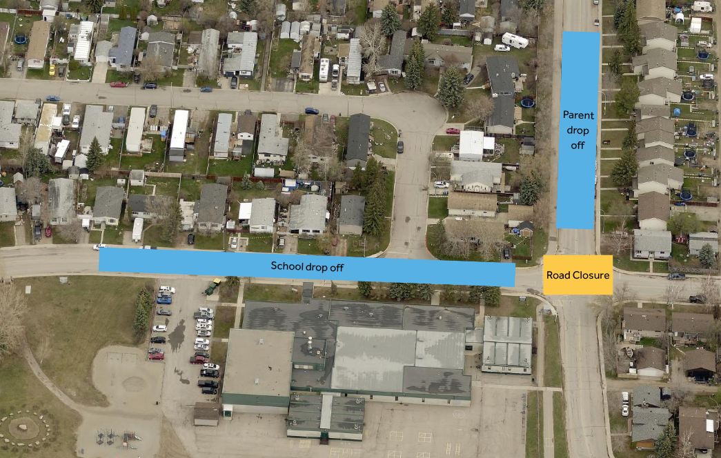 Parent drop-offs should approach from the north via Maplewood Drive. Parking and drop-offs will be allowed along the curb north of the school.