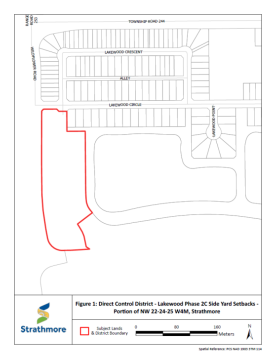 Please be advised that the Town of Strathmore has received a Land Use Bylaw Amendment application impacting Phase 2 of the Lakewood Community. The Developer has indicated to the Planning Department that there is demand for secondary suites, garage suites, and 1.2 m side yard setbacks in Lakewood.